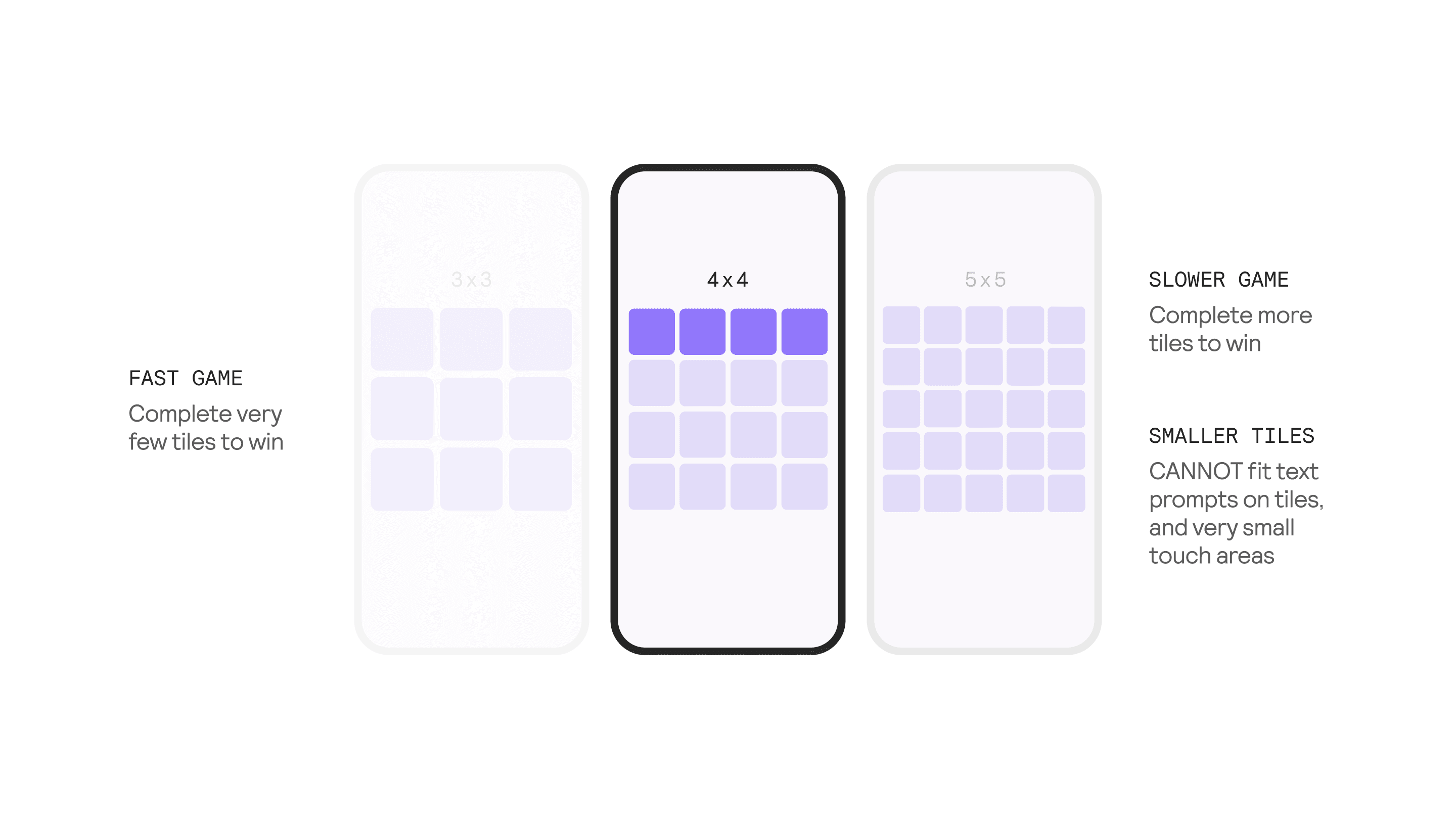 We realized that the board dimensions have huge implications on the pacing of the game and touch interactions.